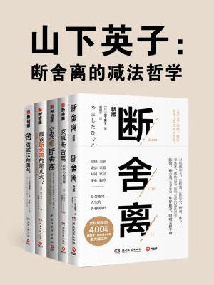 断=断绝不需要的东西,舍=舍弃多余的废物,离=脱离对物品的执着。风靡全球的“断舍离”概念已经在15个国家出版几十种图书,多次获得流行语大奖提名。但是总是被人当做只是物品的整理方法,实在是有点可惜,断舍离的内涵远不止这些。所谓断舍离是“出”的美学,不仅是家里的物品,不需要、不舒服、不合适的情感和被父母强加的价值观都可以通过分离和舍弃,让身心变得轻松起来,慢慢的一些“奇迹”会发生,人生因而发生巨大改变。本套书包括享誉全球,畅销400万册的《断舍离》书系的全5册内容,帮助读者脱离心中执念,人生轻盈前行!《断舍离》:“断舍离”书系集大成之作!断舍离是通过立足当下和新陈代谢原则,梳理自己与物品的关系,先从观念上认识现状,停止自我否定,构想居所具体布局,然后通过杂物整理了解当下自己的真实需求,进一步构筑令自我愉悦的生活状态。 《舍,做减法的勇气》:一本深度解读断舍离式减法工作法的心理励志读物,是锻炼“断舍离式领导力”的书。本书将断舍离的焦点主义、三分法、留白法应用于定日程表、处理信息、提高会议效率等多种工作场景,摆脱瞎忙和低效。《最该断舍离的是丈夫?》:断舍离不是一定抛弃谁,重要的是让自己的人生变快活。本书开篇启发大家设想“余生,你将与谁携手,怎样度过”,然后分别从家务分配、婚姻制度、分居出轨、家庭暴力等生活热门议题,分析亲密关系变坏的症结,剖析问题的心理根源,让读者自己通过断舍离的思维方式找到适合自己的亲密关系经营之道。《家事断舍离》:山下英子专为日常整理写作的断舍离指南,教你在做家事的过程中思考并找到自己真正想吃的、想拥有的生活方式和空间,重塑令你舒适自在的生活风格。这本书将日常整理分为“早、晚、周末”家务,结合70余幅实拍图和80余幅手绘图帮助读者认清家事的本质,通过选择和决断,将烦琐的家事变成乐在其中的生活仪式,践行“断舍离”,逐步清理自己的生活空间,把小日子越过越轻盈。《空海与断舍离》:一本对“断舍离”思维方式进行溯源与升华的心理励志类图书。本书通过回顾“断舍离”思想的萌生和发展,展现了“断舍离”的思想内涵与日本古代高僧空海大师所创真言宗思想相似之处,并通过讲述空海大师一生的修行经历,将“断舍离”的精髓与空海大师生活方式进行类比,从流传千年的禅意哲学里找到“断舍离”能契合大众生活的思想根基。