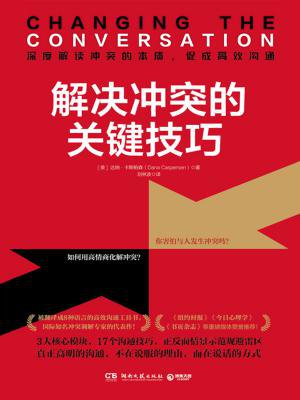 “沟通最大的问题是,人们想当然地以为已经沟通了。” 这是一本教你如何化解冲突,实现有效沟通的社交工具书。 面对日常生活和工作中的冲突,人们通常会有这4种反应:回避、迁就、强迫、妥协。在冲突调解专家达纳・卡斯帕森看来,这都是“无效社交”,只会让冲突更加激化。真正有效的解决方式是“协同”,了解双方的差异所在,找出双赢方案。本书从“有效社交的17个原则”出发,展示了创造性谈话和破坏性谈话将造成的截然不同的结果,帮助人们改变表达方式,在冲突的关键时刻促成有效对话,从根本上解决冲突。 书中的沟通技巧广泛适用于商务谈判、职场沟通、朋友交往、情侣相处、初识陌生人等各种社交场合。 满满的都是干货! 不吵架、不逃避、不当和事佬, 复杂局面简单化,话说对了,事就成了。