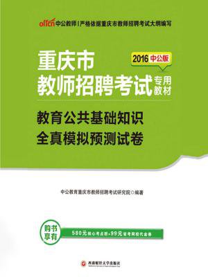 《中公版・2016重庆市教师招聘考试专用教材:教育公共基础知识全真模拟预测试卷》是中公教育教师招聘研究团队在深入研究重庆市教师招聘考试真题及考试大纲的基础上,精心编写而成。本试卷严格依据真题编写,高度还原考场,全面网罗考点,让考生充分把握考试方向,了解考试重、难点,切实提高实战能力。通过本试卷我们切实希望能够帮助大家从整体上认识教师招聘考试的特点,掌握考点,提升学习效率,在考试中取得高分。 本试卷包含10套全真模拟预测试卷,题型全面,题量丰富。 题目难易度与真题完全吻合,直击考试现场。 参考答案精准,解析详细,让考生知其然,并知其所以然。