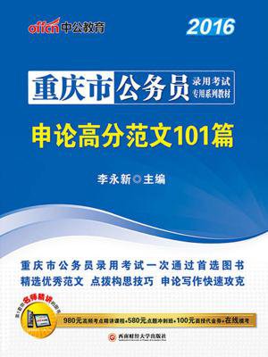 2016最新版《重庆市公务员录用考试专用教材・申论高分范文101篇》严格依据公务员考试大纲,紧扣历年真题,对命题趋势进行潜心研发,汇聚了101篇申论高分范文,并从政治、经济、社会、文化、生态五大方面进行主题划分,按照立意结构、知识储备、精彩语句三大步骤对范文进行详细赏析,帮助考生真正掌握写作技巧,提高申论成绩。