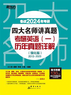 《四大名师讲真题 考研英语(一)历年真题详解:强化版》由以下内容构成:11套考研真题(包含2013~2023年11套真题)。附答案速查,方便考生对照学习及快速核对答案。各题型复习攻略。四位作者将各题型的复习方法倾囊相授,为考生点拨高分技巧,含金量高。考研复习规划详解。四位作者结合自身教学实践和考研高分学生的复习经验,悉心为考生制定了一个详细有效的复习规划。考研高分学生经验帖。试卷中间穿插着考研高分学生的复习心得体会,对即将参加研究生考试的学生们很有借鉴意义。
