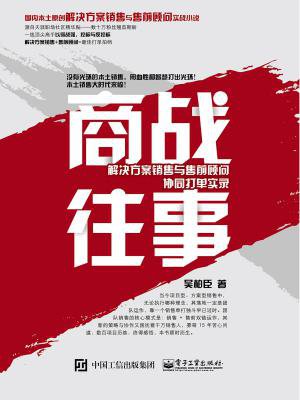 本书主要讲述通擎和朝腾为了争夺两个大项目而展开的史诗对决。在故事的开端,通擎在两个项目上都处于劣势,要想赢单,必须超越朝腾,而朝腾把持这两个项目的销售都是王牌悍将,如何超越,这是本书最大的看点和悬念。在这个故事背景下,如何组织有效的技术交流,如何搞定关键甲方决策者,如何策划演示,如何应标,如何控标,如何反控标、防控标等构成本书精彩对决的火花点。本书以销售及公关谋略为主线,售前咨询策略为辅线,使得方法上更加立体完善,并融入甲方选型决策和销售操作的场景,讲思想,但更讲落地,特别是本土情结的落地,呈现有关解决方案销售、项目销售的那种惊心动魄的操作方法和策略运用的体验。