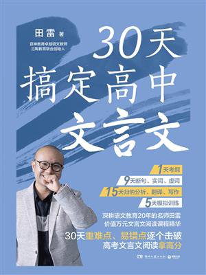 专为高考生提分的文言文备考书。1天考纲,9天断句、实词、虚词,15天归纳分析、翻译、写作,5天模拟训练。30天真题加模拟,方法加口诀,分题型突破重难点,一网打尽易错点,最后考前模拟题全复盘,文言文阅读考场拿高分!对经典的古文文本的学习,还有利于提升学生高考语文作文题的解题能力和写作水平!近年来,高考语文作文题高频地从经典的文言文中取材,2022年北京卷的作文题“学习今说”就是证明!田老师关于此作文题的范文也被收录在本书中。书后还贴心地附加了文言固定句式、文化常识汇编。这是一本特别适合高中生自学、课外辅修、高考备考的文言文阅读提分书。